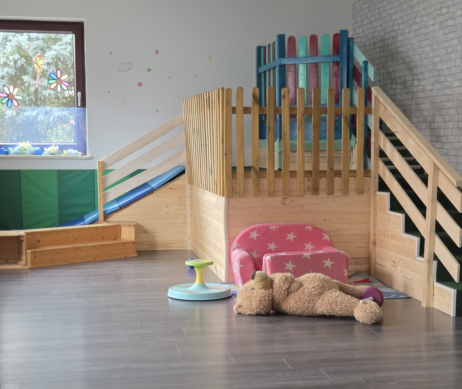 In großzügigen Räumen verteilt auf ca.120 m², kann gespielt, getobt, geklettert, gerutscht und vieles mehr werden.